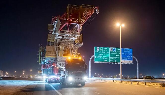 全球著名的大件運輸公司Mammoet(中文名:瑪姆特)近日從阿拉伯聯(lián)合酋長國向阿曼運輸了兩座陸上石油鉆井平臺。