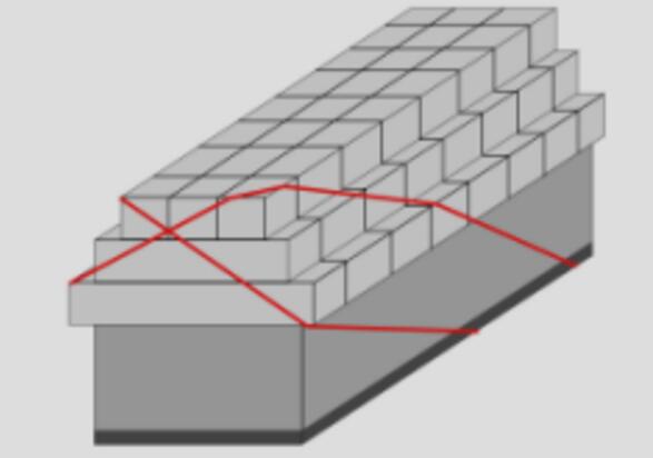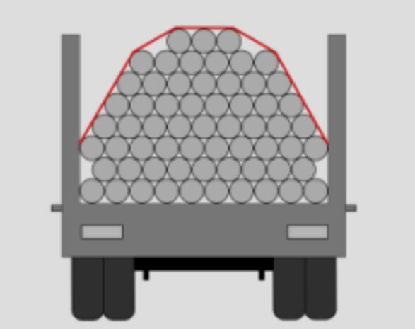 2.裝載包裝大件貨物且貨物寬度超過貨車側(cè)板時,應(yīng)層層壓縫梯形碼放,四周大件貨物傾向中間,使兩側(cè)超出側(cè)板的寬度一致,宜采用端部交叉捆綁或雙交叉捆綁的緊固方法