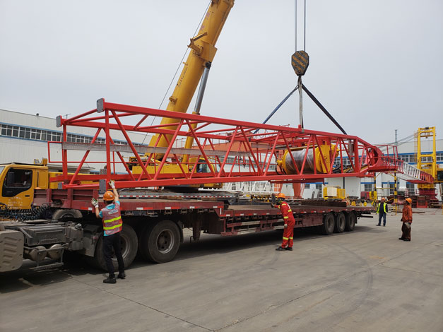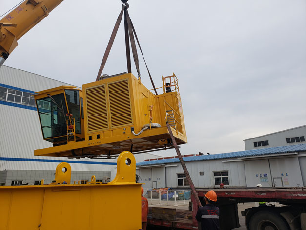 2018年5月21日凌晨5:30分左右,9輛貨車從青島市黃島區(qū)途經(jīng)青蘭高速發(fā)往青島城陽區(qū)天時海洋石油裝備有限公司,此次淳遠(yuǎn)服務(wù)的項(xiàng)目是“保稅物流一日游”業(yè)務(wù)。大約7點(diǎn)30分,貨車依次駛?cè)胩鞎r海洋廠區(qū)內(nèi),此次運(yùn)輸?shù)呢浳锟傊貫?69噸的設(shè)備機(jī)組,上午8時許,操作正式開始。